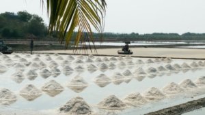 A világ legnagyobb só termelője Kína, Thaiföld csak a 26-ik. A kis medencékbe a tengervizet felszivattyúzák és a nap melege elpárologtatva a vizet a só kicsapódik.Majd lapátokkal kis gúlákba gyűjtik össze és a medence melletti területre hordják ki.A learatott sót később a só tisztítóban tisztítják és finomítják,és országszerte árulják,kis neylon zacskókba csomagolva.Sokszor láttam már Bangkokban is,hogy utcai vándorárus árulta a sót étteremről étteremre járva. A só lepárlás már családi szakma,ami generációkról generációkra öröklődik.Ha nagyon meleg és napsütéses az idő,akár 15 nap alatt is kikristályosodik a só.