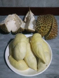 Áprilisban és májusban sok gyümölcs érik,köztük legújabb kedvencem a durián.Hogy mennyire utáltam még tavaly márciusáig!Most meg ha rágondolok,összefut a nyál a számban.Tegnap Nipol meg is lepett egy szép érett duriánnal.Hogy milyen is ez a gyümölcs,amit a gyümölcsök királyának hívnak??Isteni íz,amit pokoli szag kísér!Talán ez a legjobb leírás kezdő durián kóstolóknak.