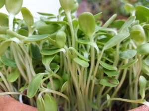 Nekem már szépen kicsírázott 5 nappal az ültetés után már vágható. Estére a napraforgó magokat beáztattam, s másnap a cserépbe ültettem jó sűrűn, s kevés földdel betakartam.
